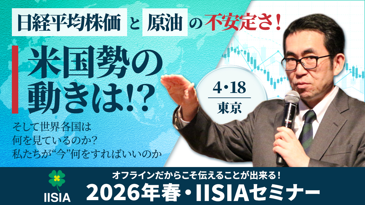 2026年春・IISIAセミナー 4月18日(土)開催! ======================== 世界全体が大混乱へ向かう中、いま私たちが学ぶ...