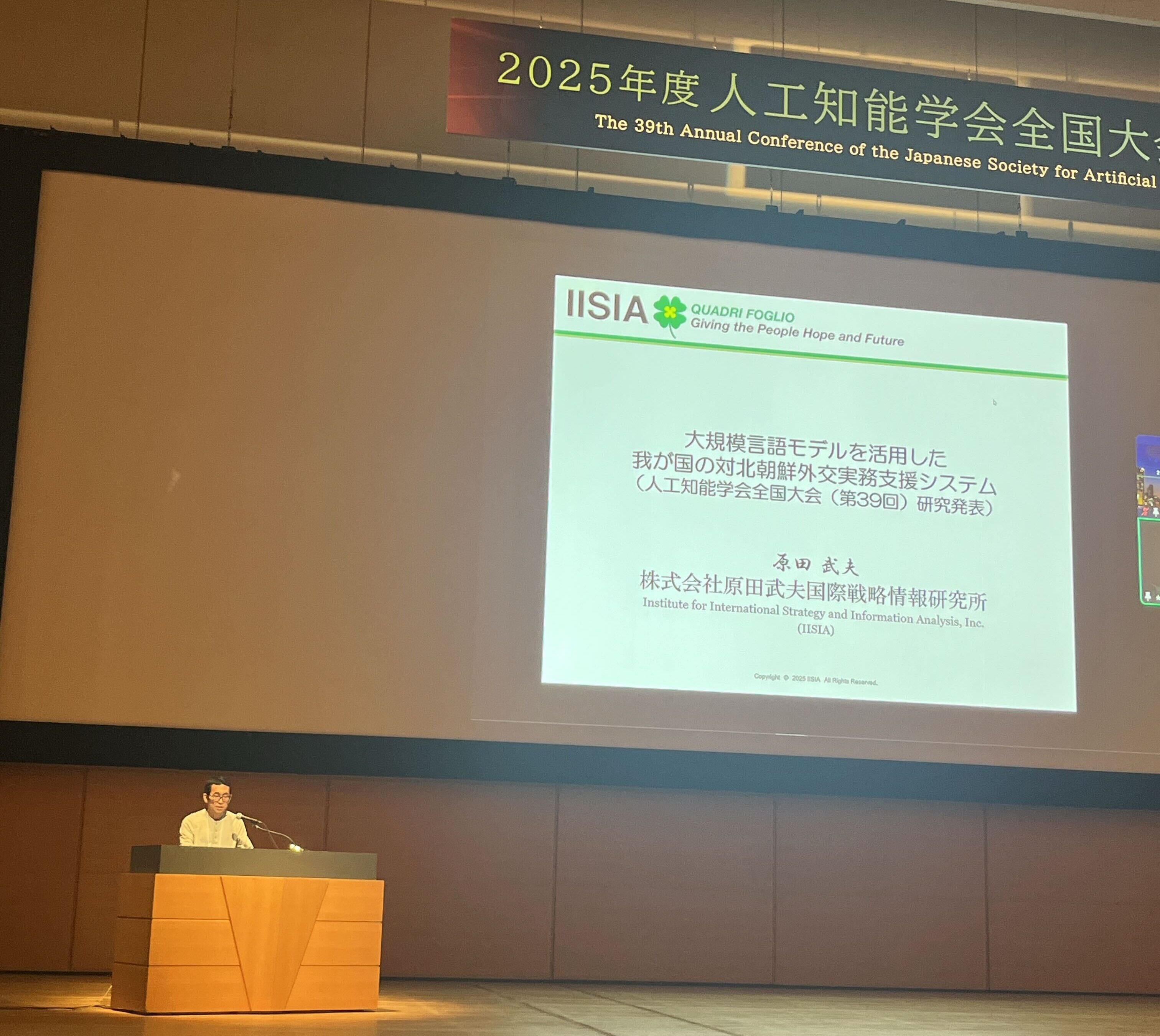 本日5月28日(水)、大阪国際会議場及びオンラインにて開催された一般社団法人人工知能学会『2025年度人工知能学会全国大会(第39回)』において、弊研究所会長・原田武夫(同学会正会員)が研究発表を行いました。
