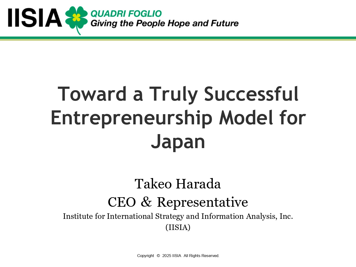 「Toward a Truly Successful Entrepreneurship Model for Japan」