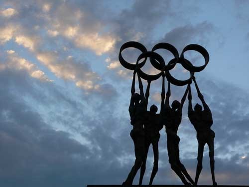 (図表:スイス・ローザンヌにある国際オリンピック委員会本部前の記念碑)