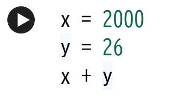 ということをしています。x, yのような、データを入れておく箱のことを変数といいます。今は、変数に数値という型のデータを入れました。データの型には、数値のほかに、文字列、真偽値、配列型、辞書型など様々な種類があります。